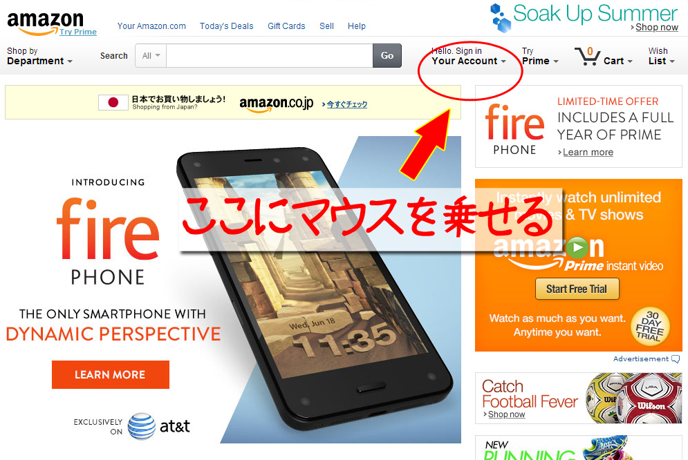 注)amazon.comはamazon.co.jp(日本のアカウント)とは共通ではありません