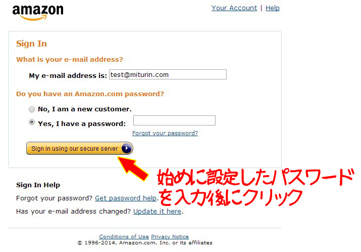 パスワードを入力後、「Aign in using our secure server」ボタンをクリック